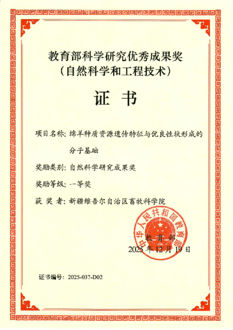 2026-01-05由中国农业大学羊遗传与种质创新研究中心李孟华教授牵头,联合新疆维吾尔自治区畜牧科学院科研团队和新疆农垦科学院科研团队申报的“绵羊种质资源遗传特征与优良性状形...