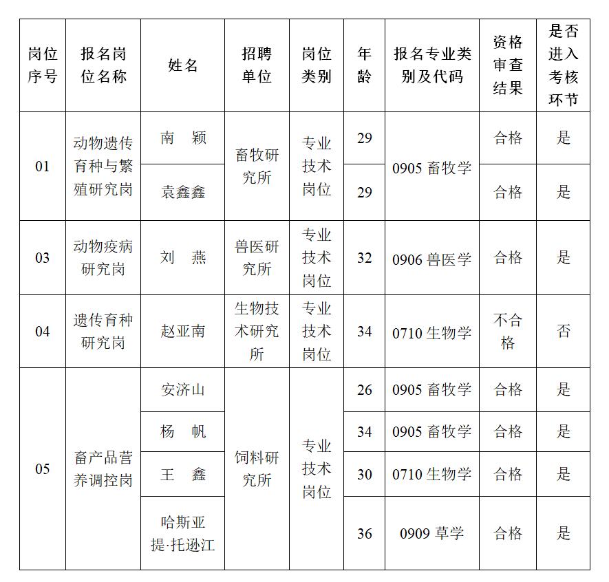 自治区畜科院2025年第三批高层次人才引进资格审查结果及进入考核环节人员名单